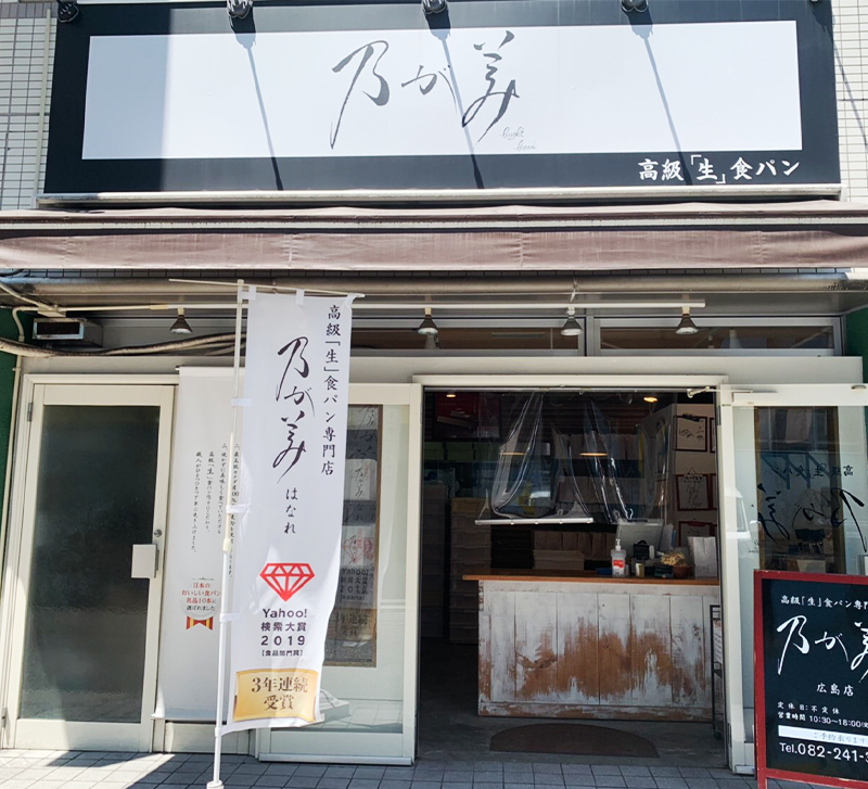 「乃が美」が全国で大阪に1店舗しかなかった頃に、乃が美創業者阪上様と出会い、2015年8月に全国展開の足掛かりの一つとして広島への出店を当社に託して頂きました。乃が美の高級「生」食パンの美味しさを守り、ブランドとして根付かせ、たくさんのお客様に愛されるよう、日々真心を込めて食パン作りに取り組んでいます。